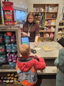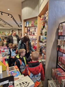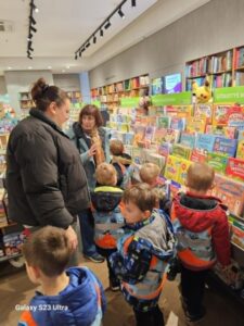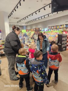 Spalio 31 d. grupės „Žirginėliai” vaikai vyko į edukacinę pažintinę išvyką į knygyną „Vaga”. Vaikai greitai atrado lentynas, kuriose sudėtos knygos vaikams. Pastebėjo, kad knygyne galima įsigyti dėlionių, žaislų. Rado ir suaugusiems skirtų knygų. Pastebėjo knygų kainas, nusipirko spalvinimo knygelę. Knygyno darbuotoja Ina leido vaikams pabandyti klijuoti kainas ant dovanų pakavimo popieriaus ritinių. Vaikai buvo dėkingi už malonų priėmimą.