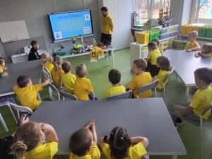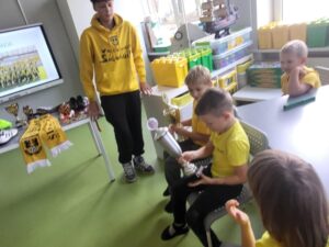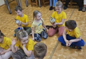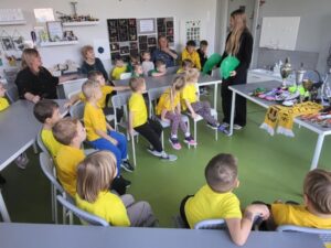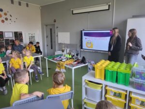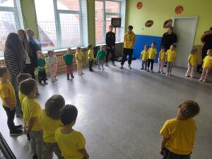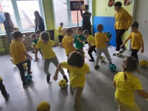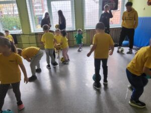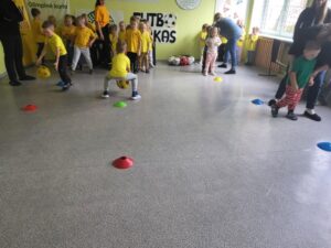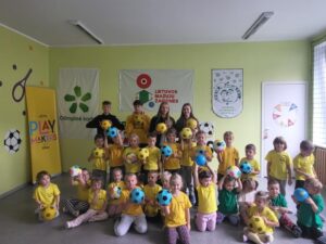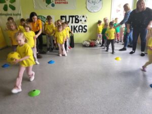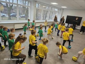 2025 m. lapkričio 5 – 7 dienomis mūsų įstaigoje Šiaulių Juventos progimnazijos 7B klasės mokiniai Laurynas R., Miglė R., Gabrielė B. ir Šiaulių Jovaro progimnazijos 7D klasės mokinys Dominykas K. dalyvavo savanoriškose SKU veiklose „Pažink sportą”. Mergaitės mūsų mažiesiems paruošė puikų pristatymą apie lengvosios atletikos sporto šaką – bėgimą, šuolius ir metimus, paaiškino, kad lengvoji atletika – tai viena seniausių sporto šakų pasaulyje. Berniukai paruošė pristatymą apie futbolą, demonstravo sporto inventorių, pasidžiaugė savo turimais laimėjimais, pasiūlė vaikams apžiūrėti iš arčiau. Vaikai drauge su mokinukais atliko bendrą mankštą, bėgo trumpas distancijas, šokinėjo per kliūtis, bandė mesti kamuoliukus, išbandė kamuolio varymą, spirti kamuolius į vartus. Vėliau pasiskirstę komandomis žaidė estafečių rungtis. Mokiniai skatino mažesniuosius aktyviai judėti, palaikyti sveiką gyvenseną bei domėtis sportu.![]()
