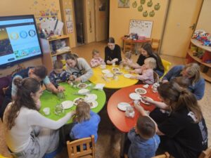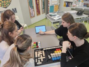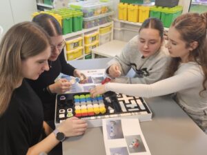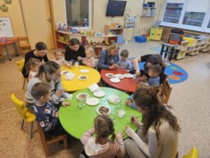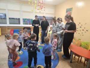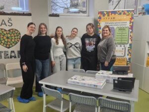 Lapkričio 19 d. grupėje „Šermukšniukai“ vyko SKU veikla, kurią praturtino Šiaulių Universiteto gimnazijos moksleivės – Smiltė, Skirmantė, Andželika, Nerilė ir Ugnė. Merginos nuo pat ryto įsiliejo į grupės gyvenimą: dalyvavo ryto rate, susipažino su vaikais ir aptarė kūrybines veiklas, kurias įgyvendins kartu. Artėjant žibintų šventei, visi drauge gamino žibintus – mažieji džiaugėsi ne tik kūryba, bet ir šiltu, draugišku merginų bendravimu. Grupėje tvyrojo jauki, įkvepianti atmosfera, kurioje vyresniųjų pagalba ir dėmesys suteikė vaikams daug džiugių emocijų. Ikimokyklinio ir neformaliojo ugdymo mokytoja Laura supažindino moksleives su mokytojo profesija: papasakojo apie savo kasdienį darbą, pasidalino patirtimi, pristatė neformaliojo ugdymo veiklas, kurias veda ir su kitų grupių vaikais. Taip pat merginoms buvo parodytas STEAM kabinetas bei jame esančios STEAM priemonės. Moksleivės turėjo galimybę išbandyti „Cubroid“ konstruktorius – tai suteikė ne tik smalsumo, bet ir kūrybinio iššūkio.