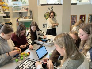 Lapkričio 26 d. Šiaulių lopšelyje-darželyje „Berželis“ vyko metodinė diena, kurioje dalyvavo Vilniaus universiteto Šiaulių akademijos Edukologijos instituto pirmo kurso pradinio ir ikimokyklinio ugdymo studijų programos studentės ir dėstytoja, dr. Jurgita Lenkauskaitė. Metodinės dienos paskirtis – įstaigos patirties sklaida siekiant į vaiko sėkmę orientuoto ugdymo(si). Būsimoms pedagogėms įstaigos direktorė Sonata Dedūraitė, pristatė ESK ir Erasmus+ programų galimybes, o įstaigoje savanoriaujantys Omar Məmmədli ir Mariam Abuladze savo patirtis Šiaulių lopšelyje-darželyje „Berželis“. Neformalaus ugdymo ir specialiosios grupės mokytoja metodininkė Laura Zinkevičienė su būsimomis pedagogėmis aptarė STEAM ugdymo(si) taikymo galimybes ikimokyklinio ugdymo įstaigoje bei pravedė praktinę veiklą. Tikimės, kad pristatytos patirtys ir patirtos emocijos įkvėps jaunąsias studentes naujiems iššūkiams. Džiaugiamės galėdami dalintis įstaigos sėkmėmis, kurios turtina vaikystę.