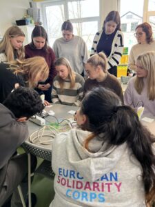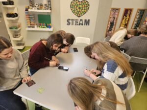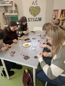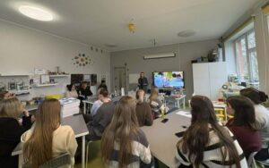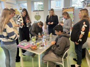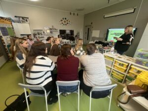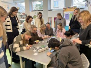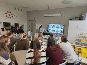 Lapkričio 26 d. Šiaulių lopšelyje-darželyje „Berželis“ vyko metodinė diena, kurioje dalyvavo Vilniaus universiteto Šiaulių akademijos Edukologijos instituto pirmo kurso pradinio ir ikimokyklinio ugdymo studijų programos studentės ir dėstytoja, dr. Jurgita Lenkauskaitė. Metodinės dienos paskirtis – įstaigos patirties sklaida siekiant į vaiko sėkmę orientuoto ugdymo(si). Būsimoms pedagogėms įstaigos direktorė Sonata Dedūraitė, pristatė ESK ir Erasmus+ programų galimybes, o įstaigoje savanoriaujantys Omar Məmmədli ir Mariam Abuladze savo patirtis Šiaulių lopšelyje-darželyje „Berželis“. Neformalaus ugdymo ir specialiosios grupės mokytoja metodininkė Laura Zinkevičienė su būsimomis pedagogėmis aptarė STEAM ugdymo(si) taikymo galimybes ikimokyklinio ugdymo įstaigoje bei pravedė praktinę veiklą. Tikimės, kad pristatytos patirtys ir patirtos emocijos įkvėps jaunąsias studentes naujiems iššūkiams. Džiaugiamės galėdami dalintis įstaigos sėkmėmis, kurios turtina vaikystę.