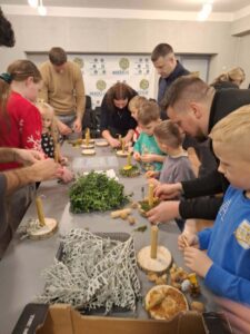 Adventas – turbūt pats jaukiausias ir stebuklingiausias laikas metuose. Nepaisant to, kad prieššventiniu laikotarpiu visi kažkur skubame, stengiamės iki metų galo nudirbti nebaigtus darbus, į mūsų darželį (Lydos g.) sugūžėjo grupių „Kaštoniukai“ ir „Riešutėliai“ tėveliai. Džiaugiamės, kad visi drauge galėjome pasidalinti laukimo džiaugsmu, pabūti šalia, pajausti ore skaldantį gėrį, jaukumą, paprastumą. O ir veiklos tikrai netrūko: pristatytas tarptautinio savanorio Omar Mammadli inicijuotas šešėlių teatro vaidinimas įtraukiant vaikus; sukurtas vaikų, tėvelių ir mokytojų Advento vainikas; kiekviena šeima pasigamino po stalo dekoraciją su vaško žvakele. Nuoširdžiai dėkojame visiems dalyvavusiems. Renginio organizatorės, mokytojos: Akvilė Bušininkaitė, Loreta Elinskienė bei Tatjana Andrijauskienė.