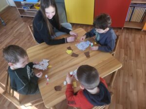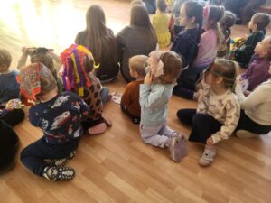 Kadangi tą dieną mūsų įstaigoje vyko Užgavėnių šventė, mažieji draugai pakvietė Gabrielę ir Miglę kartu joje sudalyvauti. Šventėje netrūko džiugių emocijų, smagių dainų ir šokių.![]()