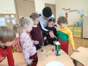 Vasario 13 d. „ABC” grupėje lankėsi savanoris iš Azerbaidžano – Omar. Visą savaitę šioje grupėje daug dėmesio buvo skirta Lietuvai – vaikai susipažino su pagrindiniais Lietuvos miestais, aptarė regionus, dirbo su žemėlapiu, kalbėjo apie valstybės simbolius bei meilę savo šaliai. Artėjant Valentino dienai vaikai kartu su mokytoja ir savanoriu gamino meškiukus su Lietuvos vėliavos spalvų megztiniais, taip stiprindami pilietiškumo ir tautinio tapatumo jausmą. Taip pat buvo atliktas eksperimentas su pienu ir dažais, kurio metu vaikai, padedami mokytojos Akvilės Bušininkaitės ir savanorio Omar, stebėjo spalvų sąveiką, darė išvadas.