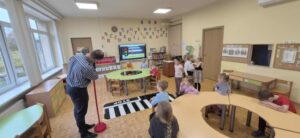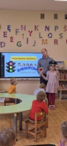 Spalio 24 d. ,,ABC” grupėje lankėsi Šiaulių menų mokyklos saugaus eismo klasės mokytojas Mindaugas Bartkus. Vaikai buvo supažindinti su Kelių eismo taisyklėmis, mokėsi įžvelgti eismo aplinkoje tykančius pavojus ir gavo patarimų, kaip jų išvengti. Patarimai skirti keliaujančiam vaikui pėsčiomis (mieste ir užmiestyje), esant lengvojo automobilio, visuomeninio transporto, mokyklinio autobuso keleiviu, dviračio, elektrinio paspirtuko ar kitos elektrinės mikrojudumo priemonės vairuotoju. Mokytojo įrengtoje virtualioje eismo aplinkoje vaikai turėjo galimybę atlikti praktines užduotis (pereiti gatvę, teisingai užsidėti dviratininko šalmą ar prisisegti atšvaitą. O smagiausia dalis – žaidimai! Mažieji linksmai žaidė „Šviesoforo“ ir eismo kūrimo žaidimus. Emocijos liejosi per kraštus, o ką tik išmoktos taisyklės pravers kiekvieną dieną‍♂️‍‍⛔️❗️