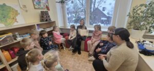 Vasario 6 d. „ABC“ grupėje savanoriavo Kristupo mama Justė. Ji vaikams skaitė E. Daciūtės knygos „Medaus mainai“ pasaką „Saldžiosios pono Alberto kriaušės“. Išklausę pasaką, vaikai aptarė turinį, diskutavo apie personažų poelgius ir jausmus. Kiekvienas vaikas pasirinko labiausiai patikusį personažą ir jį iliustravo. Veiklos pabaigoje vaikai pristatė savo pasirinktą veikėją bei dėliojo pasakos siužetą pagal įvykių eiliškumą.