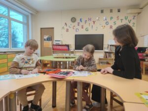 Kalbėjo apie šalies regionus, didžiuosius miestus, ieškojo jų žemėlapyje, aptarė, kuo jie ypatingi. Vaikai su smalsumu tyrinėjo, kur yra Vilnius, Kaunas, Klaipėda, Panevėžys bei mūsų gimtasis miestas – Šiauliai bei kiti mažesni miestai. Vaikai dalijosi savo patirtimi apie žinomus miestus. Didelį įspūdį vaikams paliko Lietuvos tautiniai rūbai – aptarėme jų spalvas, raštus, simboliką ir reikšmę. Tai buvo smagi, turininga ir prasminga SKU veikla, skatinusi vaikų pilietiškumą, smalsumą ir pasididžiavimą savo šalimi. ![]()