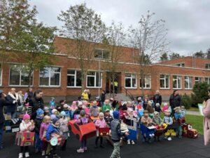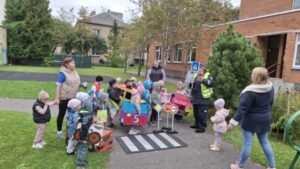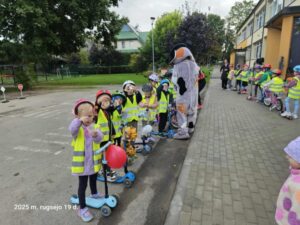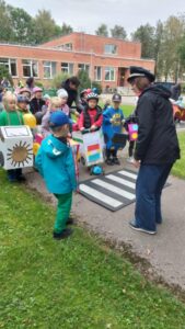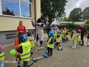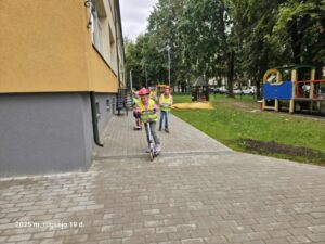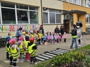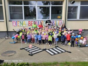 Rugsėjo 19-22 dienomis mūsų darželis prisijungė prie tarptautinės akcijos „Diena be automobilio“. Šios dienos tikslas – skatinti vaikus ir bendruomenę rinktis aplinkai draugiškas ir sveikatą stiprinančias keliavimo priemones. Į darželį vaikai atvyko įvairiai: vieni mynė dviračius, kiti riedėjo paspirtukais, o kai kurie atsivežė savo pačių, iš antrinių žaliavų pagamintas mašinas. Kieme visus pasitiko draugiškas šuniukas Amsis ir trys policininkai, kurie priminė vaikams apie saugų eismą ir tinkamą elgesį gatvėje. Šventė prasidėjo linksma mankšta, po kurios vaikai su savo transporto priemonėmis dalyvavo spalvingame parade. Vėliau laukė įvairios estafetės ir judrieji žaidimai, kurie suteikė daug džiaugsmo ir gerų emocijų. Policijos pareigūnai supažindino vaikus su svarbiausiais kelio ženklais, šviesoforo signalais ir pėsčiųjų perėjos taisyklėmis. Tokios iniciatyvos ne tik suteikia vaikams žinių apie saugų eismą, bet ir ugdo atsakomybę, sąmoningumą bei skatina rūpintis aplinka. Vaikai suprato, kad smagu ir sveika keliauti ne automobiliu, o draugiškomis transporto priemonėmis.