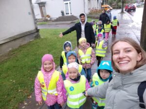 Spalio 10 dieną grupė „Riešutėliai” keliavo į Šiaulių miesto centrinį parką. Išvykos tikslas – supažindinti vaikus su saugaus elgesio gamtoje principais, ugdyti atsakomybę už savo veiksmus bei formuoti pagarbą gamtai ir jos ištekliams. Vaikai aptarė, kaip elgtis miške, prie vandens telkinių, parkuose, ką daryti pastebėjus pavojingas situacijas, ir kodėl svarbu tausoti gamtą bei jos išteklius. Grupėse kūrė skaičius iš gamtinės medžiagos – akmenukų, lapelių, kankorėžių. Vėliau pagal korteles sudarė ir apskaičiavo veiksmų eilutes, lavindami matematinį mąstymą . Eidami link parko prisiminė geometrines figūras, stebėjo kelio ženklus, įvardino jų formas, aiškinosi jų reikšmes, skaitė įmonių, kavinių pavadinimus pavadinimus, įvardino raides, skiemenavo žodžius. ️Mokytoja Akvilė