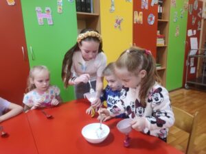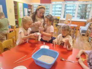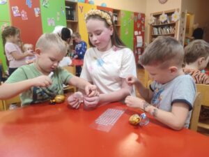 Priešmokyklinio ugdymo grupė „Riešutėliai“ gamino spalvingus emocijų žaisliukus! Vaikai naudojo krakmolą, perlines kruopas, balionus, o vėliau dekoravo juos blizgiais lipdukais ir markeriais, išreikšdami savo šios dienos emociją. SKU veiklą vedė grupės ugdytinės Iglės sesė Adrija, kuri mokosi Šiaulių Jovaro progimnazijos 6 b klasėje. Mergaitė – kūrybinga, energinga ir puiki pagalbininkė!