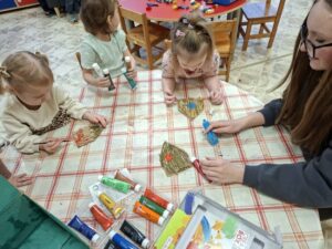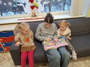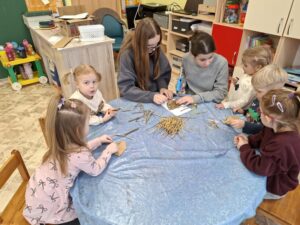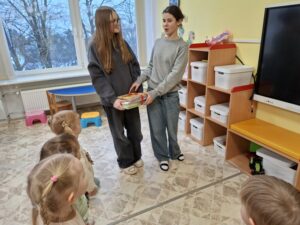 Vasario 6 d. grupėje „Rudnosiukai“ svečiavosi mokinės iš Šiaulių Jovaro progimnazijos. Mergaitės mažiesiems padovanojo knygučių ir skaitė visiems gerai žinomą pasaką „Trys paršiukai“. Po skaitymo vaikai kartu su mergaitėmis įsitraukė į kūrybinę veiklą – iš įvairių gamtinių ir antrinių žaliavų gamino paršiukus ir jų namelius. Mažieji kūrė, bendravo, dalijosi idėjomis ir patyrė daug džiugių emocijų. Pagal šią skaitytą pasaką grupės „Rudnosiukai“ vaikai taip pat sudalyvavo projekte „Lietuvių liaudies pasaka dėžutėje“. Kūrybinės veiklos metu sukurti darbeliai padėjo vaikams dar geriau įsijausti į pasakos veikėjus, lavino jų vaizduotę, kūrybiškumą ir bendradarbiavimo įgūdžius. Dėkojame Šiaulių Jovaro progimnazijos mokinėms už gražų bendravimą, smagų laiką kartu ir meilės knygoms skatinimą.