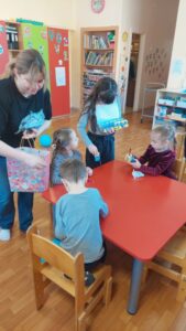Kovo 4 d. grupės „Riešutėliai” vaikams įdomią popietinę, pilną kūrybos, mąstymo ir judesio savanorišką ir SKU veiklą pravedė ugdytinio Danyl mamytė Irina ir sesutė Jelizaveta. Dėkojame nuostabioms edukatorėms ne tik už įtraukiančias veiklas, bet ir paruoštas dovanėles ![]()