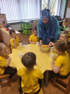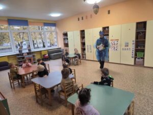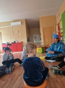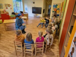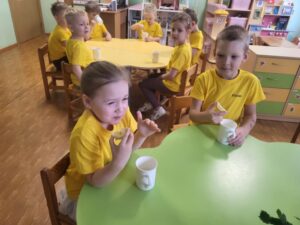Įgyvendinant LTOK programos Olimpinė karta finansuojamą projektą „Beržinuko kelionė į olimpinę sporto šalį” spalio mėnesį visuomenės sveikatos specialistė Donata M. grupėse ir vedė pokalbius vaikams apie sveiką gyvenseną bei vandens reikšmę kasdienybėje. Pasakojo, kodėl svarbu tinkamai maitintis, daug judėti ir gerti pakankamai vandens. Vaikai sužinojo, kokią reikšmę vanduo turi žmogaus organizmui, kodėl jis būtinas kasdien ir kaip padeda jaustis energingiems. Pokalbių pabaigoje vaikai ragavo vandenį su citrina, dalijosi savo įpročiais ir pažadėjo dažniau gerti vandenį vietoje saldžių gėrimų.