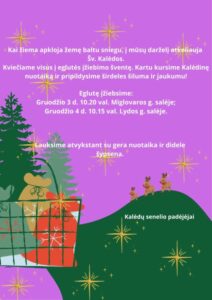 Kvietimas į Eglutės įžiebimo šventę darželyje.