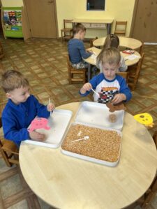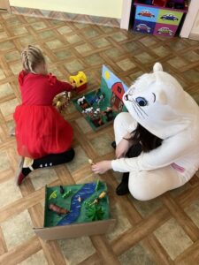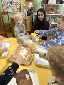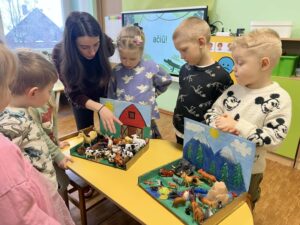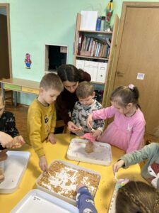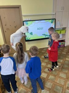 Vasario 6 d. grupėje ,,Linksmieji peliukai” ir vasario 12 d. grupėje ,,Varpelis” savanorė Gvanca Mirianashvili, atvykusi iš Sakartvelo, vykdė projektą ,,Kai aš buvau mažas”. Vaikai mokėsi gyvūnų ir jų jauniklių pavadinimus lietuvių ir anglų kalbomis. Taip pat vaikai žaidė su gyvūnų figūrėlėmis ir kūrė ūkio bei miško vaizdus. Prie stalų jie spalvino gyvūnų paveikslėlius, lavindami kūrybiškumą ir smulkiąją motoriką. Kitoje veikloje vaikai šaukšteliais sėmė grūdus ir ,,maitino” gyvūnus inituodami jų augimo procesą, taip mokėsi ne tik susikaupimo ir koordinacijos, bet ir prisidėjo prie gyvūnų ūgties.