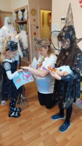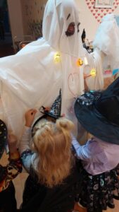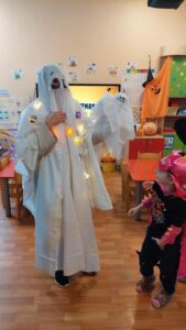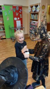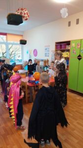 Spalio paskutiniąją savaitę grupėje „Riešutėliai” linksminosi persirengėliai ![]()