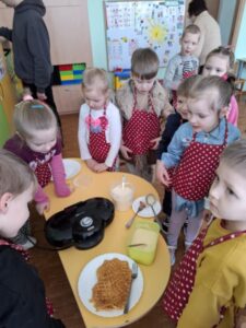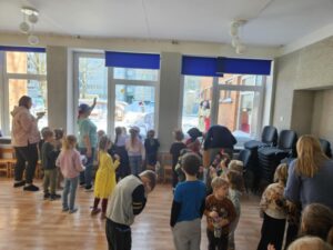 Vasario 17 d. darželyje vyko Užgavėnės, kurios užliejo visus tikra šventine nuotaika. Nuo pat ryto vaikai aktyviai įsitraukė į pasiruošimą – kepė gardžius blynus, dalyvavo linksmuose žaidimuose ir stebėjo triukšmingą Lašininio ir Kanapinio kovą. Kartu atsisveikinome su žiema, sudeginome Morę, ją su triukšmu išlydėjo, o salę užpildė vaikų juokas, muzika ir džiaugsmo kupini šūksniai. Šventės pabaigoje visi vaišinosi šiltais blynais, dalijosi gera nuotaika ir džiaugėsi kartu puoselėjamomis lietuviškomis tradicijomis.